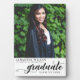 Show off your graduation photo with these trendy graduation plaque! This modern stylish graduation plague features beautiful script text spelling out the word graduation with a text template to personalise with the name, school and graduating year. Add additional message or click '' customise further''to edit this template.