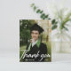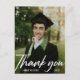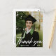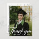Modern white brush script "Thank you" overlay, photo graduation thank you postcard. Template lines for graduate's name, year and return address on back.