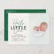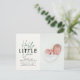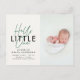 Modern script photo hello little one simple stylish birth announcement. Modern polka dot backer.