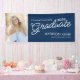 This graduation banner features a vertical photo on a dark navy blue background. The design is accented with modern handwriting script.