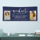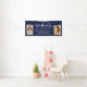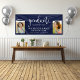 Modern Elegant Script Graduation Photo Navy Blue Banner to announce your graduate in style! Celebrate your graduate in style with this customisable photo graduation banner featuring a bold script “graduate” design, two photo slots, and clean serif text for name and school details. It’s the perfect modern decoration for a grad party, open house, or photo backdrop!