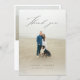 Express your heartfelt gratitude with our Modern Script Photo Overlay Wedding Message Thank You Card. This elegant and minimalist card features a personal beach photo, beautifully complemented by chic handwritten typography. Perfect for modern coastal weddings, it offers a simple yet luxurious way to say thank you to your guests. The design captures the essence of your special day, making it an ideal keepsake that reflects the ocean’s serene beauty and your love's warmth. Whether for a reception place setting or a casual yet classy thank you, this card is a stylish choice for any destination or tropical wedding.