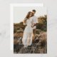 This Modern Script Photo Save the Date Announcement design features an elegant and minimalist look with a modern text layout. Add the bride and grooms photo, names, wedding location and date to personalise. Perfect design for brides looking for a minimalist and simple look to her wedding announcement.