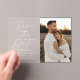 Get ready to announce your big day in style with this stunning Modern Script Photo Save the Date Card! Featuring a transparent acrylic background, this chic design showcases “Save the Date” in elegant white calligraphy, creating a sophisticated yet trendy look that perfectly complements modern weddings. Personalise this minimalist save the date with your names, wedding date, location, and a vertical engagement photo to add a personal touch. This acrylic save the date is a perfect choice for couples who want to make a lasting impression and set the tone for a stylish, contemporary wedding celebration.