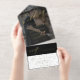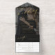 Modern elegant gold foil calligraphy script dark overlay photo all in one seal and send wedding invitation template with tear away rsvp postcard. ++++++++++++ Easy to personalise with your picture and text on both sides! The invitation is suitable for classic formal elegant trendy all seasons weddings.
