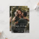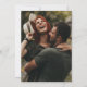 This Modern Script Photo Wedding Invitation features simple type and handwritten names with a full bleed vertical photo on the front. The back has a second photo. All elements are editable, font, photo and background colour. Click the Edit button to customise this design.
