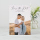 Modern Script Photo Wedding Save the Date card. The back includes a second photo with additional details. Click the edit button to customise this design with your photos and wedding details.