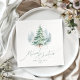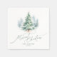 Personalized Christmas napkins feature watercolor pine tree and elegant Merriest Christmas script in sage green, modern and simple. Custom your own family name.