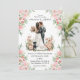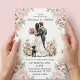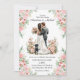 modern script pink floral wedding invitation