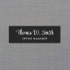 Modern professional black name tag with your name in a stylish white script and title in simple white typography.