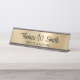 Modern professional desk name plate with your name in a stylish script on a brushed gold faux metallic background. Add your title in simple typography.