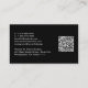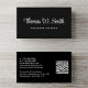 Modern professional black business card with your name in a stylish white bold script and your title and contact information (such as email, telephone numbers, firm name and mailing address) in clean, simple white typography. Input your website's URL address to create a scannable QR code connected to your website, portfolio, social media profile, or any other platform that showcases your work, making it easy for customers and clients to explore your expertise.