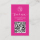 Modern minimalist script and QR code in hot pink business order thank you. Add your social media. With an elegant signature script font, all the colours are editable , add your logo. 5 star review for your customers.