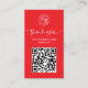 Modern minimalist script and QR code in winter christmas red business order thank you. Add your social media. With an elegant signature script font, all the colours are editable , add your logo. 5 star review for your customers.