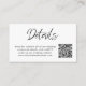 Modern wedding details enclosure card featuring "Details" in a chic script. Input your wedding website address to create a QR code that guests can scan to RSVP online and obtain information such as accommodations and directions.