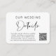 Modern wedding details enclosure card featuring "Details" in a stylish contemporary script. Input your wedding website address to create a QR code that your guests can scan to obtain all of your wedding details such as directions and accommodations. On the back, your photo is overlayed with your names and wedding date joined together by a heart.