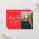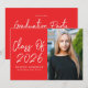 Celebrate your graduate’s big achievement with these modern graduation party invitations featuring "Class of 2025" in elegant white handwritten script on a bold red background. Customize the front with the graduate’s name, school name, and a vertical senior photo for a personal touch. The back of the invite showcases all the essential party details in crisp white lettering on a coordinating red background. Perfect for high school or college graduations, these eye-catching invitations set the tone for a memorable celebration.