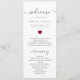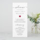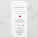 This chic wedding program shines with simplicity. Modern typography and gorgeous calligraphy accented by a pretty red heart, this order of service with a summary of key people on the back is both minimalist and elegant.
