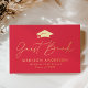 Capture the memories of your graduate's big day with this stunning red graduation guest book, featuring a gold foil graduation cap at the top and "Guest Book" in modern gold foil script. Personalise the book with the graduate's name, school name, and graduation year below for a unique and meaningful touch. The spine also displays the graduate's name and class year for a lasting keepsake. On the back, a full-bleed horizontal photo of the graduate adds a personal flair to the design. This graduation guest book is perfect for both high school and college graduates, providing a stylish and memorable way to collect well wishes and reflections from friends and family.