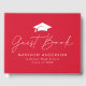 Celebrate your graduate's achievement with this elegant graduation guest book, featuring a white graduation cap and "Guest Book" in modern white script against a bold red background. Personalise the guest book by adding the graduate's name, school name, and graduation year in white lettering below the title. The spine of the book is also customised with the graduate's name and class year, making it a lasting keepsake. On the back, the guest book showcases a full-bleed horizontal photo of the graduate, adding a personal touch. Perfect for both high school and college graduates, this guest book is a beautiful way for guests to share their congratulations and create memories to cherish for years.