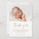 This modern photo baby baptism thank you card features hand lettered calligraphy script thank you art that is moveable and that you can easily change the colour of, a horizontal photo and editable text. Click the edit button to customise this design.