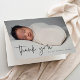 This Modern Script Baby Photo Baptism thank you card features a beautiful full bleed horizontal photo and hand lettered thank you script and minimal editable text. Click the edit button to customise this design.