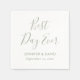Simple, yet elegant sage green wedding paper napkins with a modern script font. Best day ever wedding napkins. Easily personalise online. Matching items available for these minimalist wedding paper napkins.