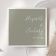 These simple, modern wedding napkins feature white text aligned to the right margin on a sage green background. Add the names of the bride and groom in stylish handwriting calligraphy.