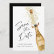 Modern Script Save the Date Card. Designed with a beautiful watercolor Gold Champagne Bottle. Matching items in our store Cava Party Design.