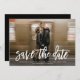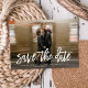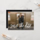 This modern wedding save the date announcement features a full-bleed horizontal photo and a modern script "Save the Date" in white. The back of the card is black. ALL colours are customisable - backer colour, text colour, even the script colour! Just click "edit using design tool" in the dropdown menu.
