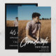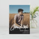 Modern white script "Graduate" overlay, senior class photo graduation announcement and invitation in black. Template lines for graduate's name, class of year and school. Back of card features 2 additional photo spaces with text lines for your open house/graduation party details.