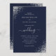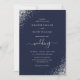 Modern Script Silver Glitter Navy Blue Wedding Invitation