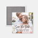 Share your wedding date with this simple and elegant photo save the date magnet featuring one of your favourite engagement photos with the "Save the Date" and your names and wedding date in modern black fonts over a sheer white overlay band.
