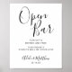 Elegant and modern minimalist simple with script open bar and modern typography for wedding sign.