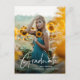 A Modern Script Simple Photo Graduation Invitation with handwritten font full bleed portrait photo on the front with name and graduation details. The back has a second photo and additional party details. Click the edit button to customise this design.