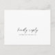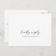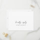 This modern script song request RSVP postcard is perfect for a minimalist wedding. The simple black and white design features unique industrial lettering typography with modern boho style. Customisable in any colour. Keep the design minimal and elegant, as is, or personalise it by adding your own graphics and artwork. Build your wedding guest list and your dance floor song list all at once! This wedding response postcard conveniently asks guests if they will be able to attend your wedding, and also what song will get them to dance.