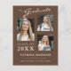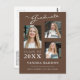Modern 3 photo graduation announcement postcards. This custom design combines handwritten, calligraphy style script with modern text in white and light grey on a stylish tan brown background. The back of the design offers customisable text fields for your announcement and graduates information. To see more items like this, visit my store here at "www.Zazzle.com/LakeViewCardCo". Thanks