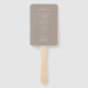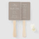 This modern wedding program fan features white script and sans serif text on a taupe background.