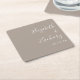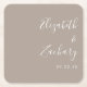 These simple, modern wedding coaster favours feature white text aligned to the right margin on a taupe background. Add the couple's names in stylish handwriting calligraphy.