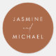 Seal your wedding envelopes with these simple and stylish envelope seals! The design features your names in modern white lettering complemented by a handwritten script with a terracotta background. These boho terracotta wedding stickers are perfect for sealing envelopes, adding to wedding favours, and more!