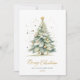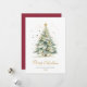 Modern Elegant Calligraphy Script Christmas Tree Non Photo Christmas Cards. This festive simple minimalist Christmas Holiday cards features a watercolor christmas tree with decoration gold balls and confetti and a „Merry Christmas” greeting text which is written in a nice hand lettered font type in gold and white. On the reverse side dusty red background. This festive Custom Photo Christmas Cards are a great way to remind loved ones that you're thinking of them this Winter Holiday Season.