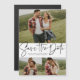 With a three photos and a modern script written "save the date" in black on a white background, this card is the perfect way to announce your engagement and upcoming wedding to friends and family. The black text is bold and modern but still sophisticated. The customisable text on the front has room for names, date, location and other information like a wedding website. This unique original save the date photo card design can be found more colours and styles in the collection by Lea Delaveris Design.