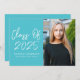 Celebrate your graduate’s achievement with these modern graduation party invitations featuring "Class of 2025" in a stylish white handwritten script on a vibrant turquoise background. Customize the front with the graduate’s name, school name, and a vertical senior photo for a personal touch. The back of the invite highlights all the essential party details in crisp white lettering on a coordinating turquoise background. Perfect for high school and college graduates, these trendy and elegant invitations set the tone for an unforgettable graduation celebration.