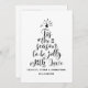 Celebrate the magical and festive holiday season with our custom holiday photo cards. Our modern holiday design features our holiday Christmas tree graphic designed with a festive and stylish script handwriting typography "Tis The Season To Be Jolly, With Love" in black that creates the impression and design of a Christmas tree. A star is placed at the top of the tree with lines to represent the star shinning brightly.The year, family member's names and last name are beautifully incorporated into the holiday tree design to create the tree shape. The all white background and the black tree typography creates a modern and minimalistic holiday card design. The reverse side features a three photo layout in a modern minimalistic chequered board design with the letter J, O, Y placed between the photo to spell out the word "joy" All artwork contained in this typography Christmas tree three photo holiday card are hand-drawn original artwork by Moodthology. You can customise the text size, text colour, font and layout for your own personal design preference