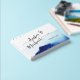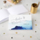 An elegant watercolor indigo blue background with modern script in foil design is perfect for a stylish contemporary wedding.