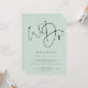 Modern Script We Do Mint QR Code Wedding. Add your QR code to your wedding website on the back makes this a convenient option for your guests to RSVP and see all the details without the need for separate RSVP and details cards. A simple yet elegant design on a background of pastel mint green. Stylish set script We Do takes centre stage at the top. The rest of the text you can easily personalise. Text and background colours can be changed if you wish to better suit your wedding theme via the customise further option.