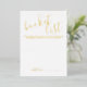 This card features title in real gold foil modern calligraphy font style and details in real gold foil modern sans serif font style on white background.
