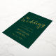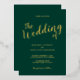 This design features title in real gold foil modern script font with wedding details in real gold foil modern sans serif font on emerald green background.