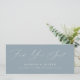 Elegant wedding seating chart header featuring the phrase "Find Your Seat" displayed in a modern white calligraphy script with a dusty blue background. Personalise the dusty blue seating chart header card with your names, wedding date, and wedding location. The design coordinates with our Modern Elegance wedding collection.