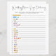 This minimalistic script Wedding Movie Emoji Pictionary game is the perfect way to celebrate your wedding or bridal shower in style. Features cute emoji bridal and wedding phrases, plus modern typography. ANSWER KEY: 1. Bridesmaids 2. 27 Dresses 3. Bride Wars 4. Corpse Bride 5. The Wedding Singer 6. Four Weddings and a Funeral 7. Monsoon Wedding 8. Father of the Bride 9. The Wedding Date 10. The Wedding Planner 11. Sweet Home Alabama 12. American Wedding 13. Love, Wedding, Marriage 14. Double Wedding 15. Runaway Bride 16. My Big Fat Greek Wedding 17. Princess Bride 18. Wedding Crashers 19. Monster-in-Law 20. Made of Honour. You can personalise this design by clicking on "Personalise this template" or if you wish to change the font, background colours or arrange the design elements in a different way you can click on "Edit using Design Tool".